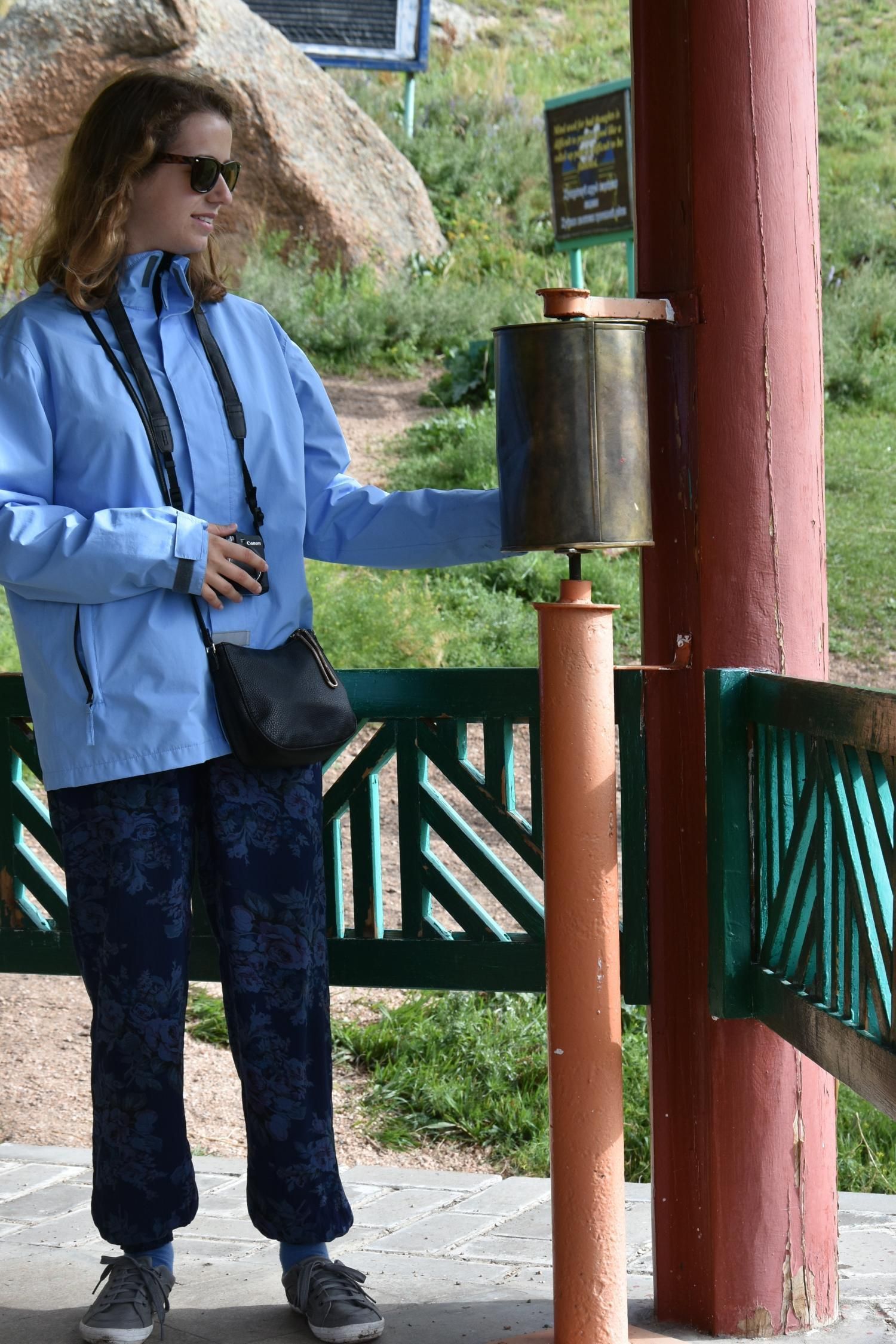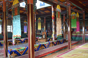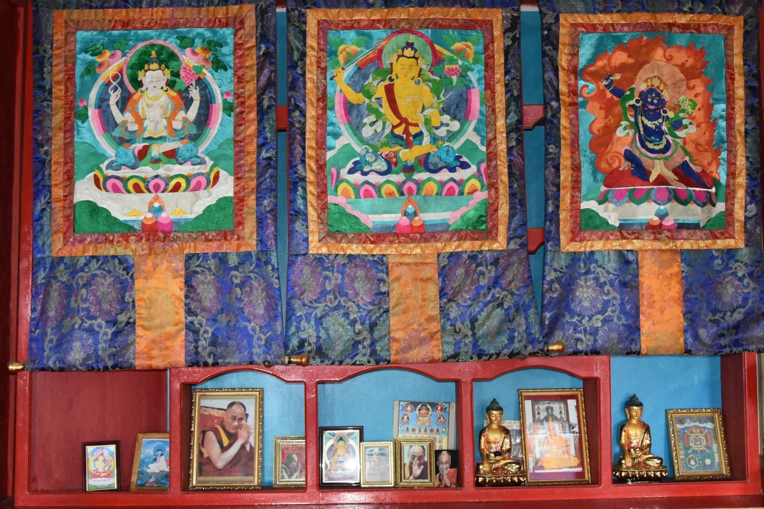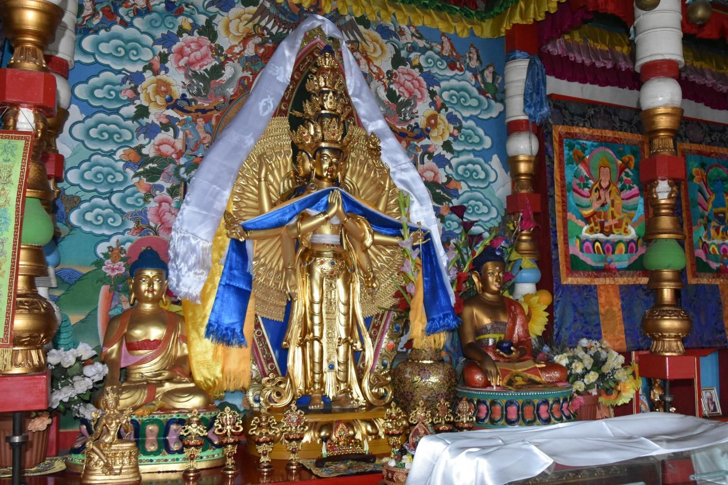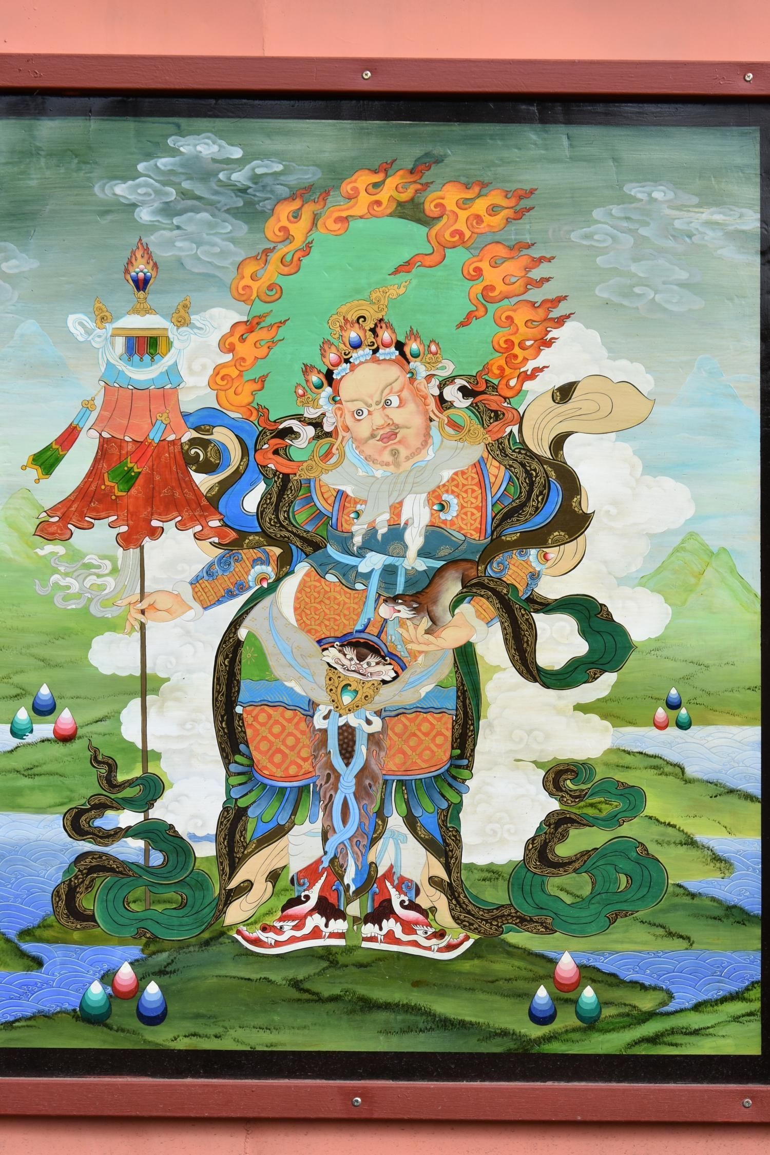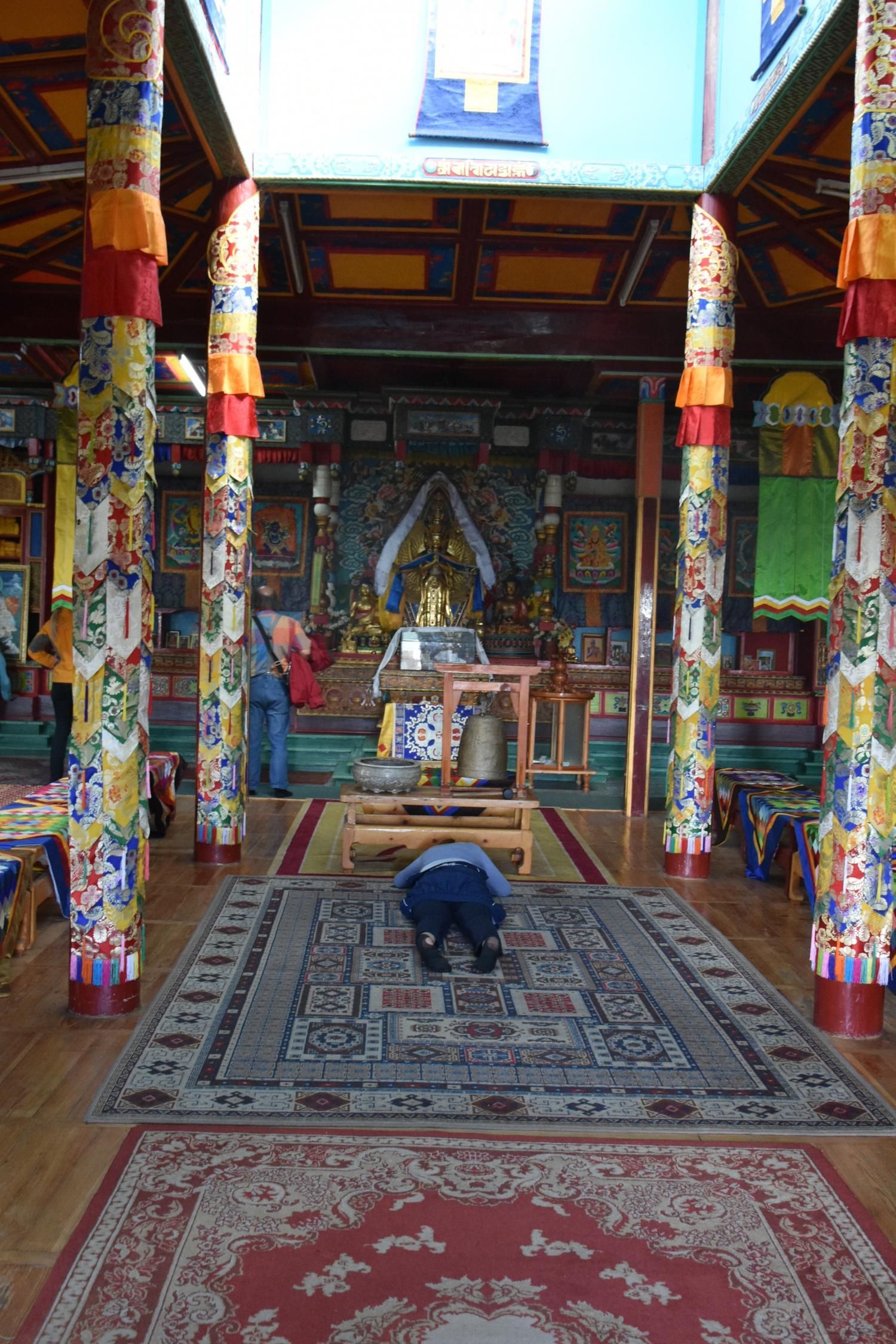 108 moulins à prière, 108 marches pour monter au monastère, 108 récitations du mantra d'Aryapala (Avalokiteshvara) "Om Mani Padme Hum"