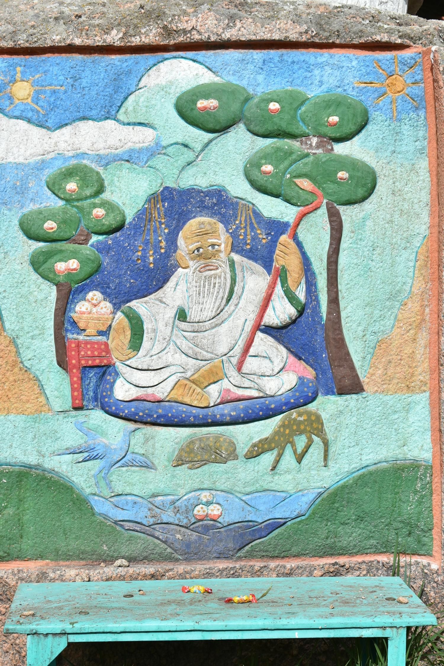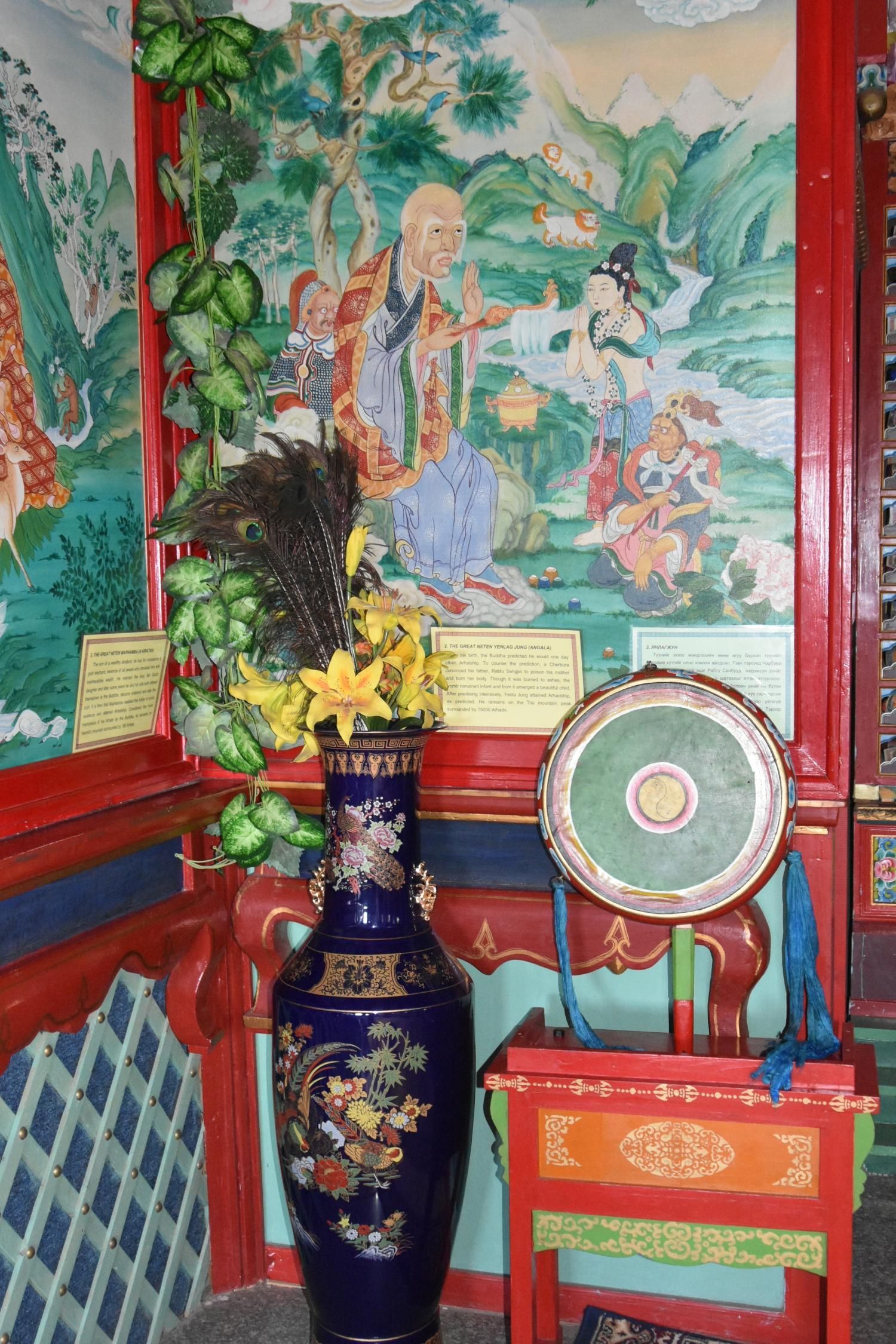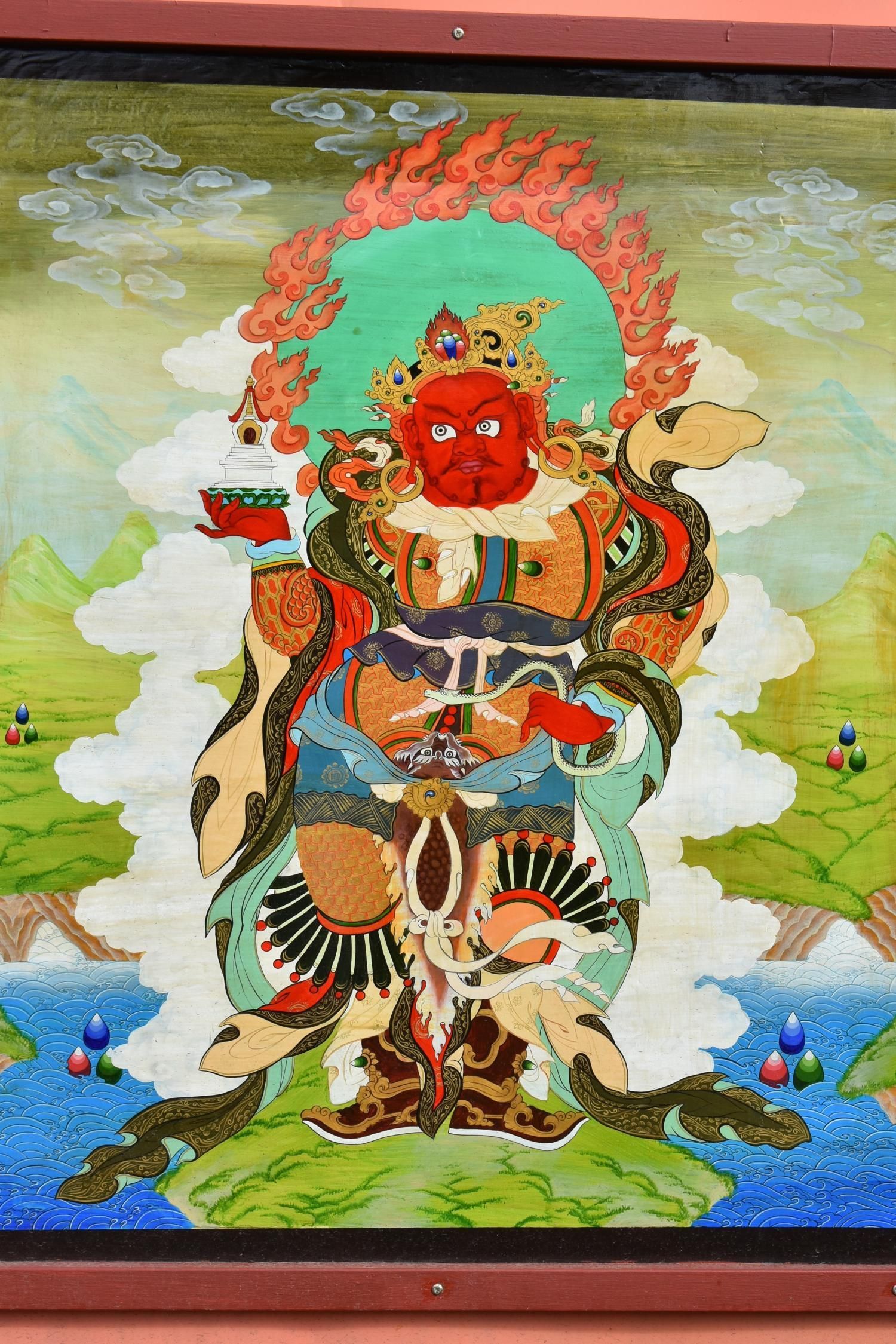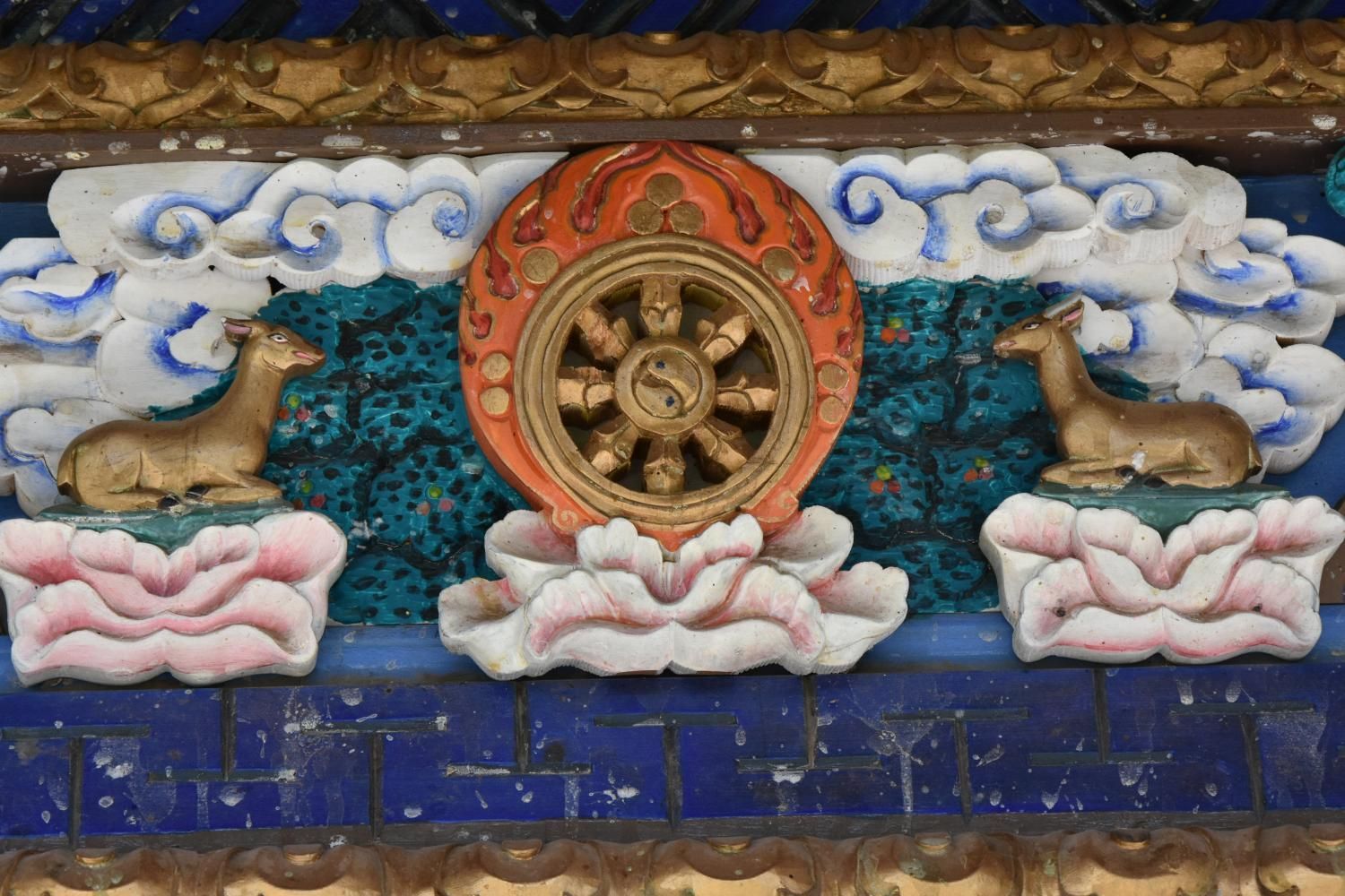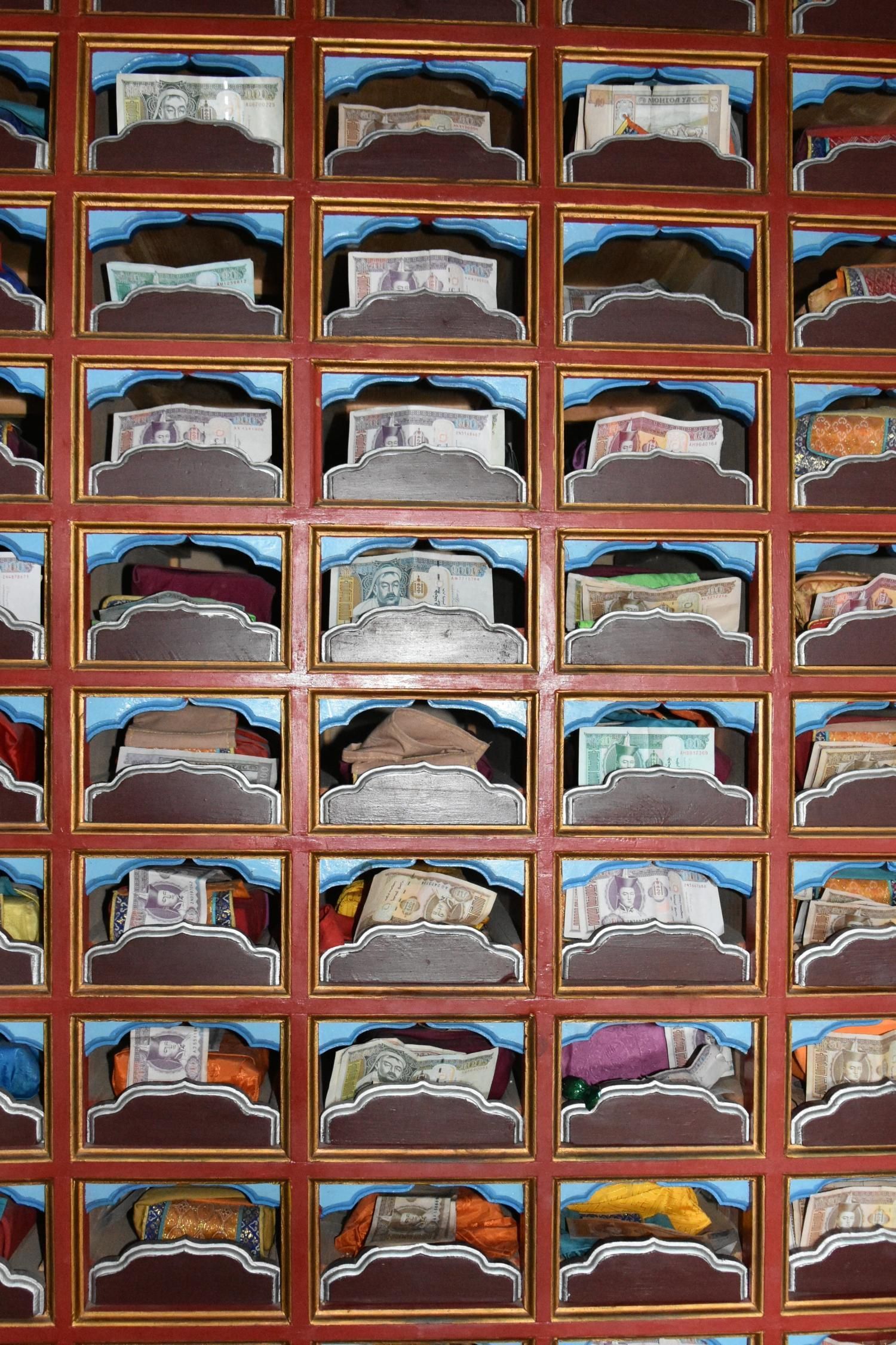 108 moulins à prière, 108 marches pour monter au monastère, 108 récitations du mantra d'Aryapala (Avalokiteshvara) "Om Mani Padme Hum"
